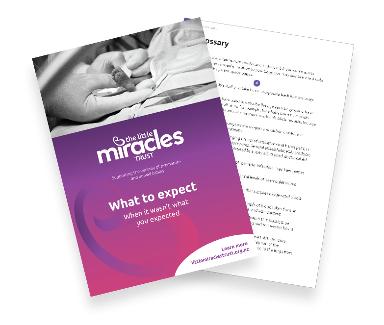 To help you through this time, The Little Miracles Trust has put together the “What to Expect” booklet. It’s filled with honest advice, comforting words, and practical tips for whānau of babies born too soon – or critically ill.